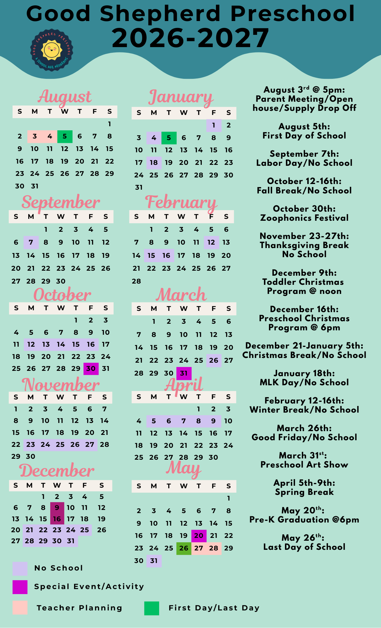 Welcome friends! The first few years of a child’s life are important learning years. It is our mission to provide an early childhood education that promotes a child’s physical, intellectual, social/emotional, and character development, in a safe and nurturing environment. Using developmentally appropriate curriculum and practices, our caring staff chooses materials and activities that will engage and challenge their students. At Good Shepherd Preschool, we play to learn!